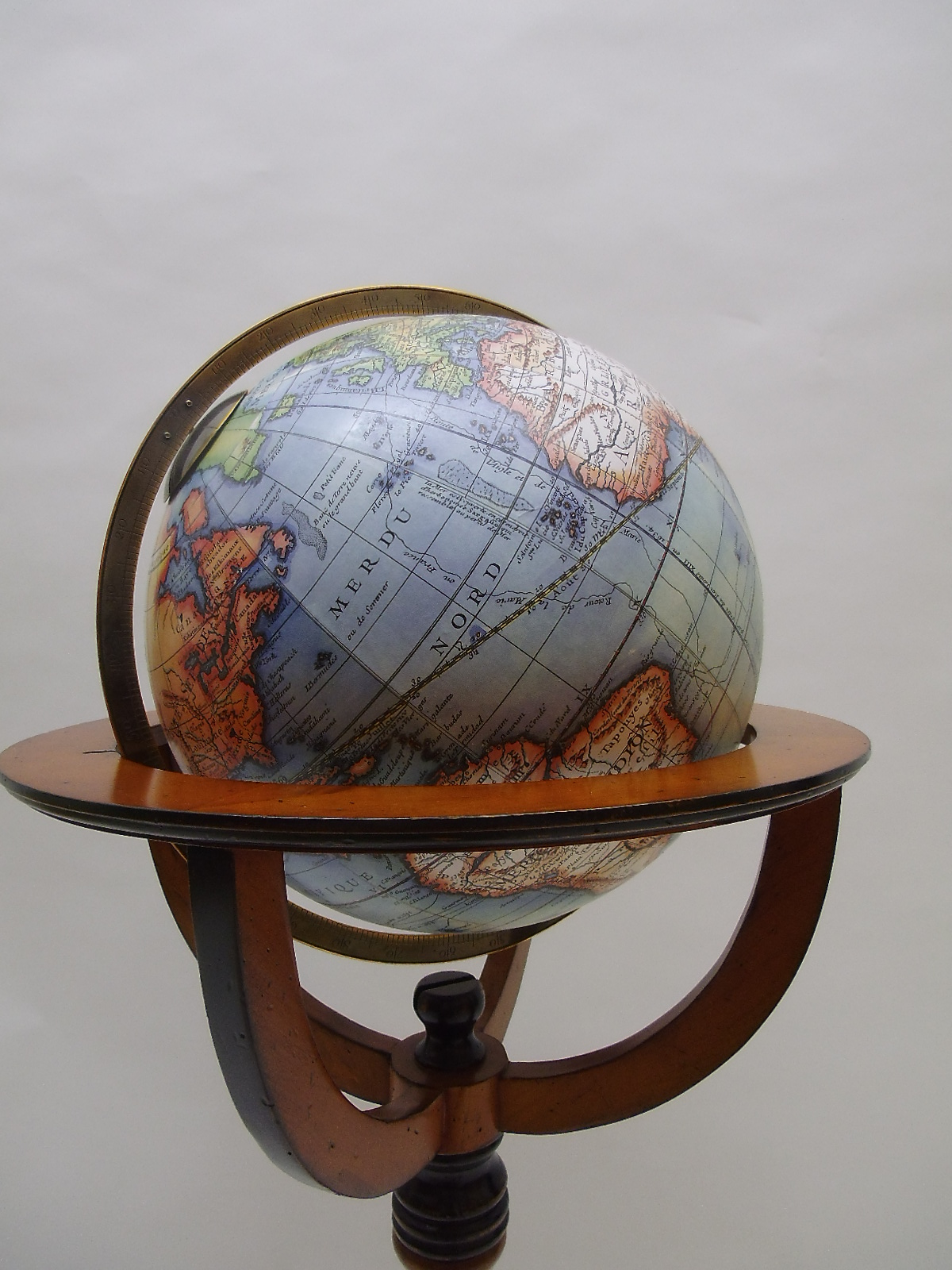 Breite 48 x Tiefe 48 x Höhe 96 cm Globus, mit Bodenständer, hat einen Durchmesser von 32 cm und stellt somit die klassische Form dar, so wie sie über Jahrhunderte gepflegt wurde.