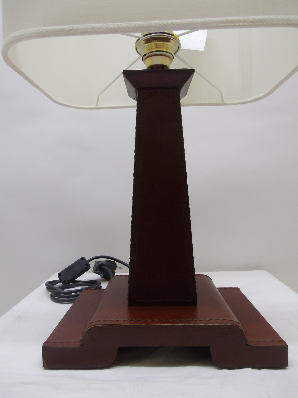 Sehr ausgefallene Tischlampe, Leder "Inguana braun"