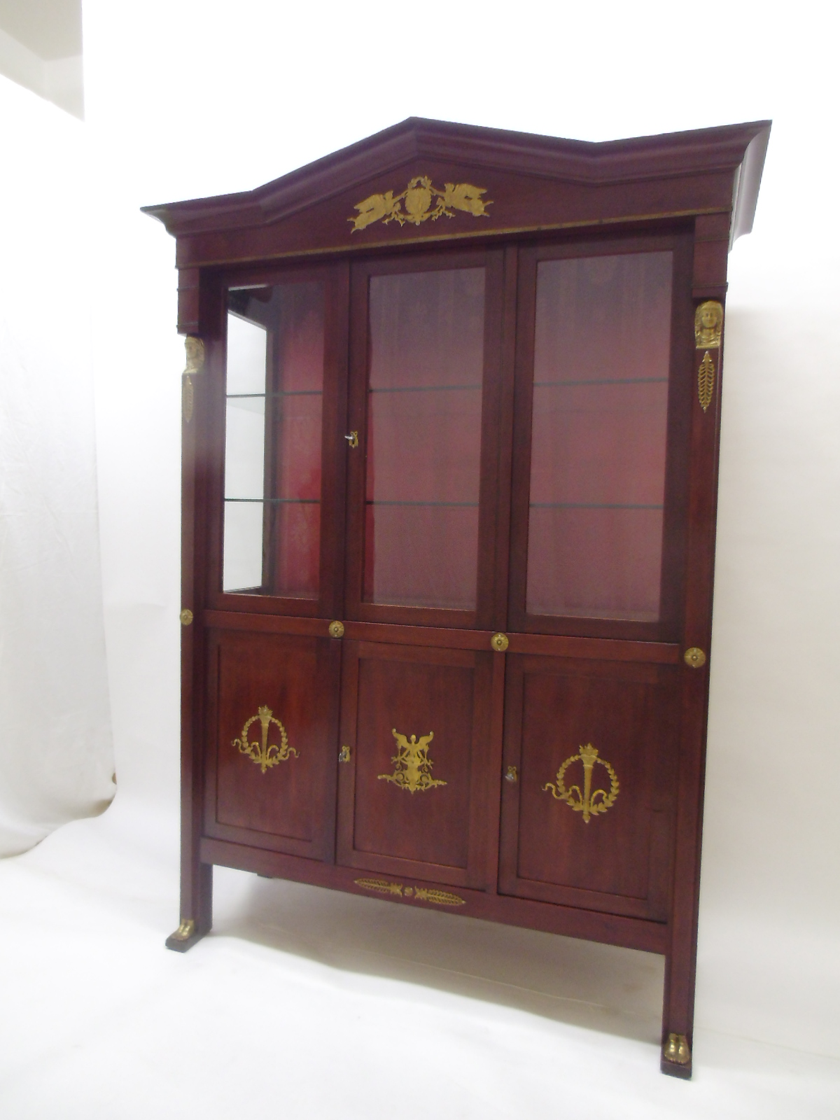 in Mahagoni, mit Glasböden, sehr ausgefallenes Möbel, Münchner Villa,