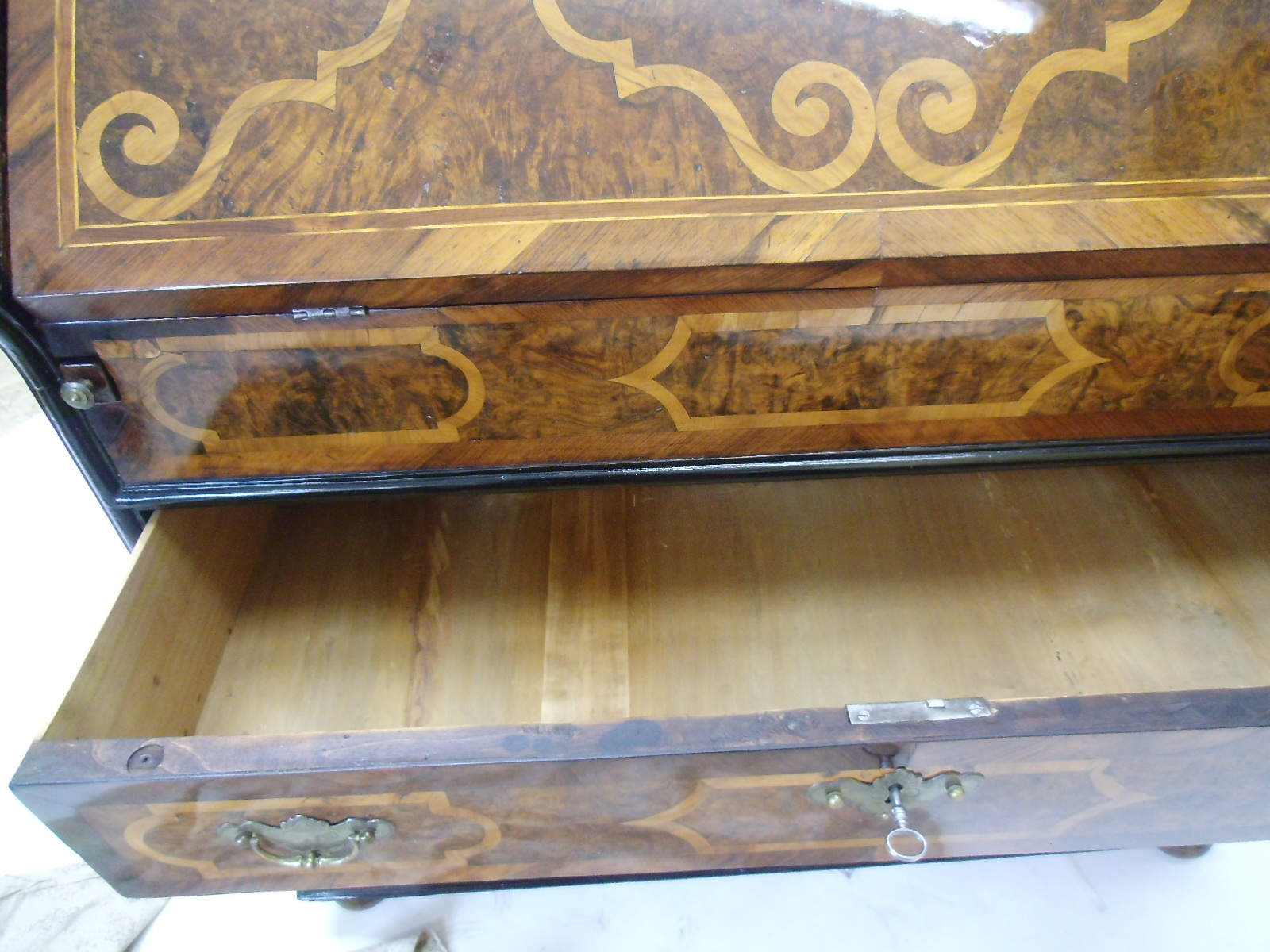 Nussbaum mit Intarsien, alles Original
